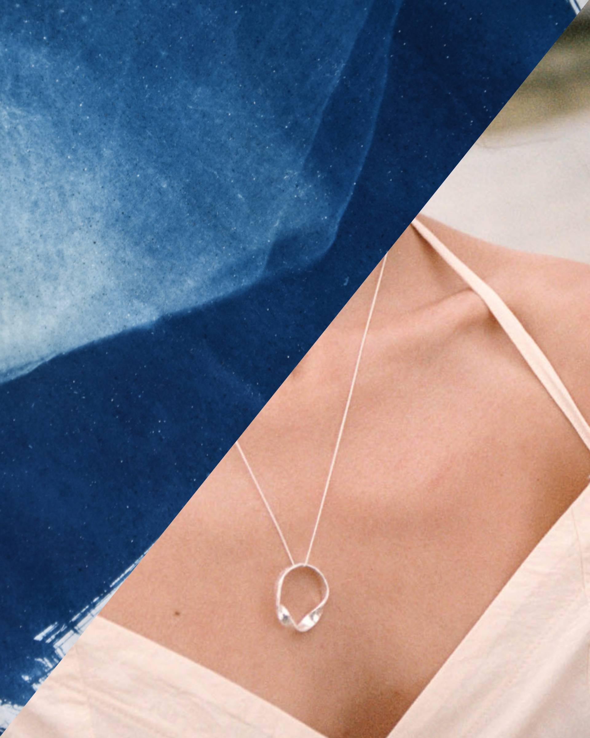 Pack d’una làmina de cianotipia feta per Studio Feliz Blau inspirada en el vent –Vayu– i penjoll de la mateixa col·lecció. Aquest pack t’ofereix un 10% de descompte al comprar les peces juntes.